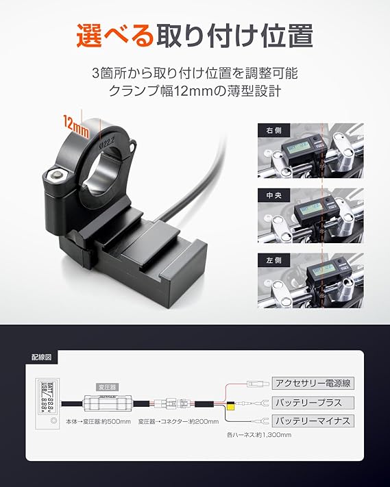• 取付時にハンドルまわり/配線スペースがタイトな車種(特にカウル付きスポーツ車など)で、配線途中のボックス位置が気になる人。