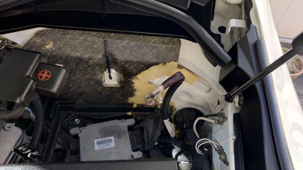 発覚した被害:エンジンと車内の間の断熱材がボロボロ…