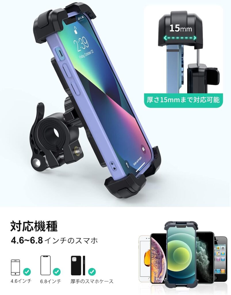 振動吸収設計により、バイクの走行中でもスマホが安定し、安全性と安心感が高いのが特徴です。