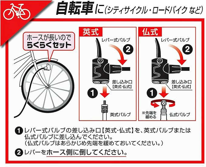 • メーター付きで空気圧管理が簡単