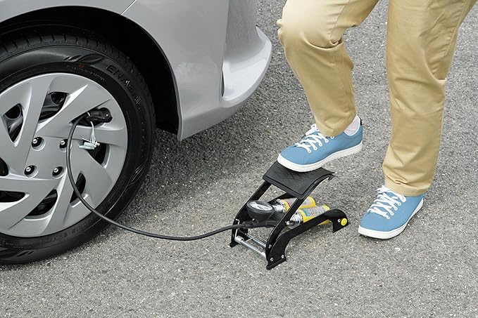 車・バイク・自転車の空気圧管理に便利なフットポンプ。